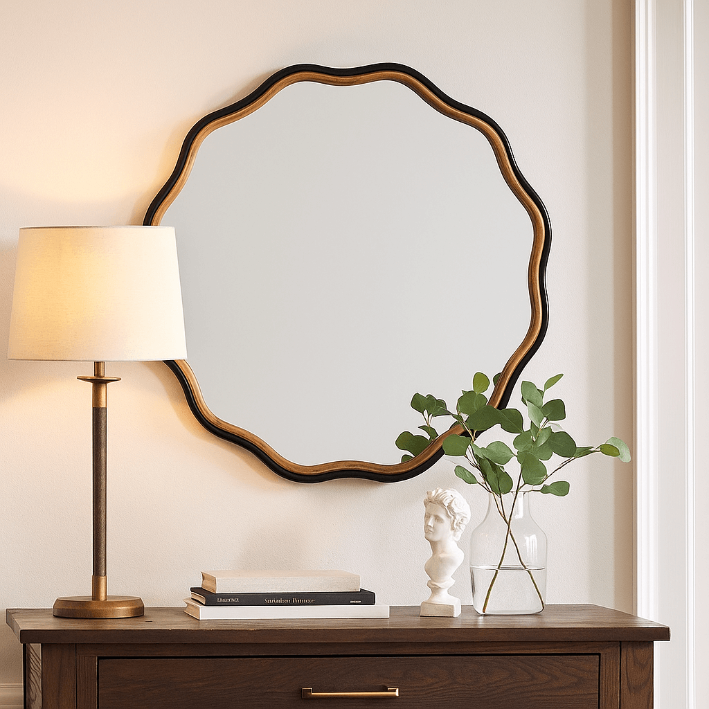 Зеркало Wave Circle — изысканный акцент, который подчеркнет индивидуальность вашего интерьера. Мягкие волнообразные линии и сочетание массива с глубоким черным оттенком создают утонченную гармонию, подходящую для современных, скандинавских и минималистичных пространств.