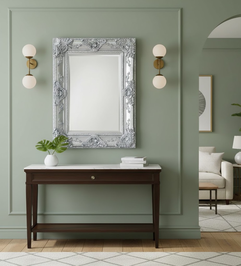 Добавить в отслеживание ценЗеркало настенное в резной серебряной раме Catalina — элегантный акцент, созданный для интерьеров, где важны утончённость, стиль и гармония. Классическая прямоугольная форма и глубокая декоративная резьба превращают зеркало в самостоятельный арт-объект, а благородное серебряное покрытие придаёт помещению ощущение свежести, света и лёгкой аристократичности.