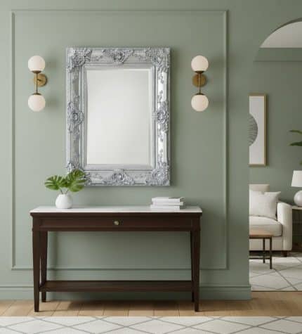 Зеркало настенное в резной серебряной раме Catalina